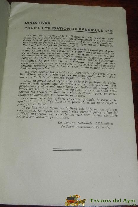 FOLLETO GUERRA CIVIL - 1936 - LE PARTI, III LECON, L´ECOLE ELEMNTAIRE DU PARTI COMMUNISTE FRANCAIS, EDITE PAR LA SECTION NATIONALE D´EDUCATION DU PARTI COMUNISTE FRANCAIS, 31 PAGINAS, MIDE 21 X 13,5 CMS. ESTE LIBRO ESTABA DENTRO DE UNA COLECCION DE MANUALES ORIGINALES DE LA GUERRA CIVIL ESPAÑOLA, SEGURAMENTE QUE FUE UTILIZADO POR EL BANDO REPUBLICANO.