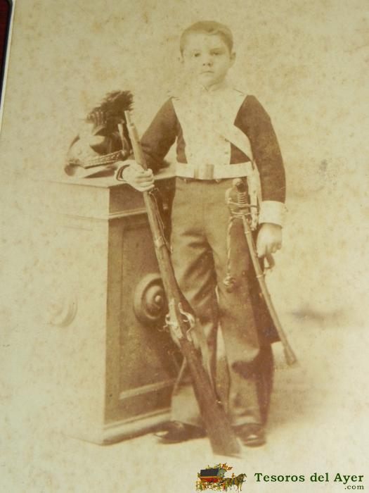 ANTIGUA FOTOGRAFIA ALBUMINA DE NIÑO VESTIDO DE MILITAR, FOTOGRAFIA OFICIALES DE GUTIERREZ, CALLE ANCHA 52 DE MADRID, CALLE SAN BERNARDO 52, MIDE 16,7 X 10,7 CMS.