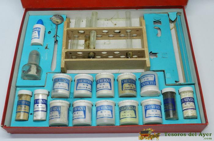 ANTIGUO JUEGO CHEMINOVA UN PEQUEÑO LABORATORIO, N.4, TODOS LOS BOTES TIENEN EL CONTENIDO, BASTANTE COMPLETO, AUNQUE COMO SE PUEDE VER EN LAS FOTOGRAFIAS LE FALTAN COSAS, MIDE 40 X 31 CMS.