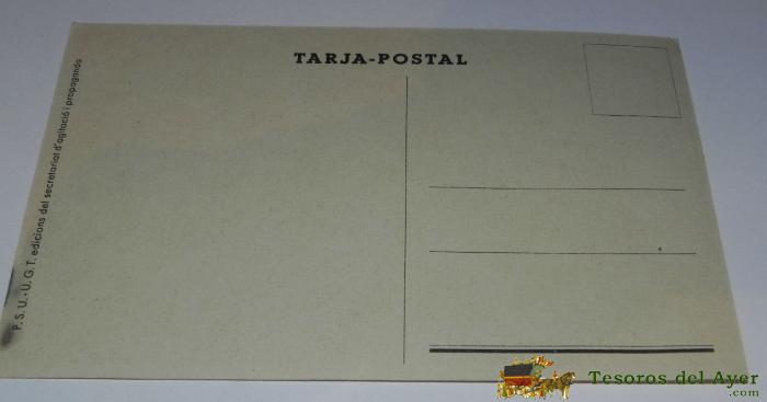 ANTIGUA POSTAL GUERRA CIVIL, P.S.U. - U.G.T. MES HOMES ¡ MES ARMES ¡ MES MUNICIONS ¡ - EDICIONS DEL SECRETARIAT D´AGITACIO I PROPAGANDA, 100% ORIGINAL, SIN CIRCULAR, TAL COMO SE VE EN LAS FOTOGRAFIAS PUESTAS.