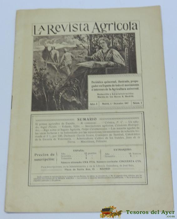 ANTIGUA REVISTA AGRICOLA, LOS DEFENSORES DEL PROGRESO AGRICOLA, 1º DICIEMBRE DE 1907, NUMERO 1., CON FOTOGRAFIA DE ALFONSO XIII, 16 PAG. MIDE 28 X 20,5 CMS.