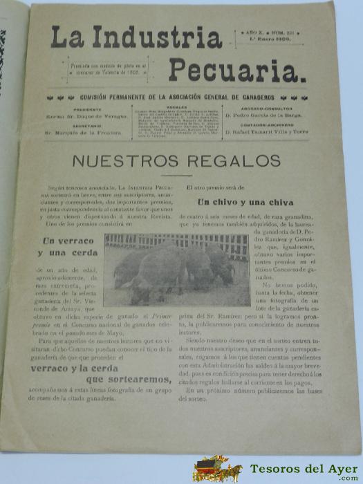 ANTIGUA REVISTA LA INDUSTRIA PECUARIA, MADRID 1 DE ENERO DE 1909, NUM. 251, 12 PAG, MIDE 32 X 21,5 CMS.
