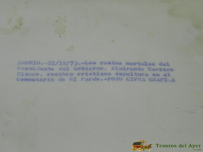 FOTOGRAFIA DE PRENSA DEL ENTIERRO DEL AMIRANTE CARRERO BLANCO, EN EL CEMENTERIO DEL PARDO, MIDE 24 X 18 CMS. ALGUN DESPERFECTO.