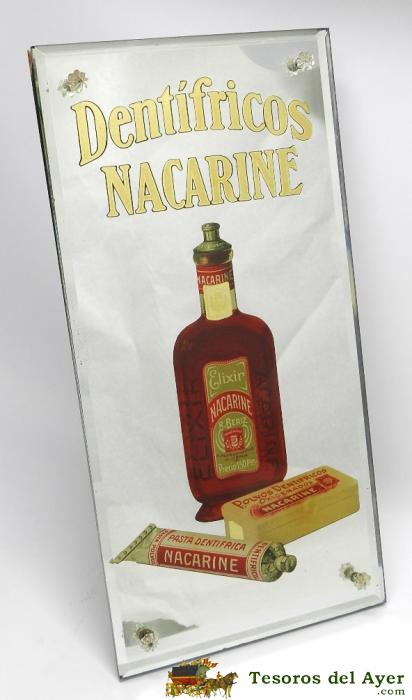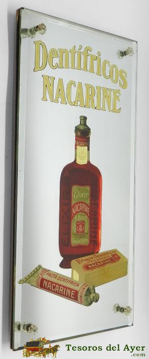 ANTIGUO Y PRECIOSO ESPEJO CON PUBLICIDAD DE FARMACIA DENTRIFICOS NACARINE - BISELADO, AUNTENTICA OBRA DE ARTE, AÑOS 20 - FARMACIA - ES GRANDE MIDE 36 X 18 CMS. - EXCEPCIONAL ESTADO DE CONSERVACION . COMPLETAMENTE ORIGINAL, Y MUY RARO - PIEZA DE MUSEO - T