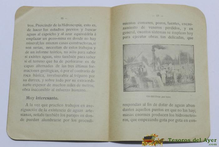 FOLLETO POZOS ARTESIANOS, POR AMARO A. MORAN, GEOLOGO ESPECIALISTA EN HIDROSCOPIA, MADRID IMP. DE ANTONIO MARZO, AÑO 1907, 22 PAG. MIDE 15 X 10,8 CMS.