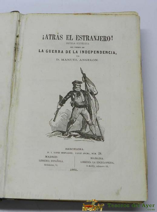 ANTIGUO LIBRO ATRAS EL ESTRANJERO!, NOVELA HISTORICA DEL TIEMPO DE LA GUERRA DE LA INDEPENDENCIA, POR ANGELóN, MANUEL, ED. LOPEZ BERNAGOSI, BARCELONA, AÑO 1861. ESTADO DE CONSERVACIóN BUENO. PRIMERA EDICION. 1036 PAG. MIDE 25 X 17 CMS. PRECIOSAS ILUSTRACI