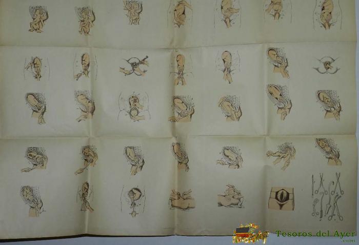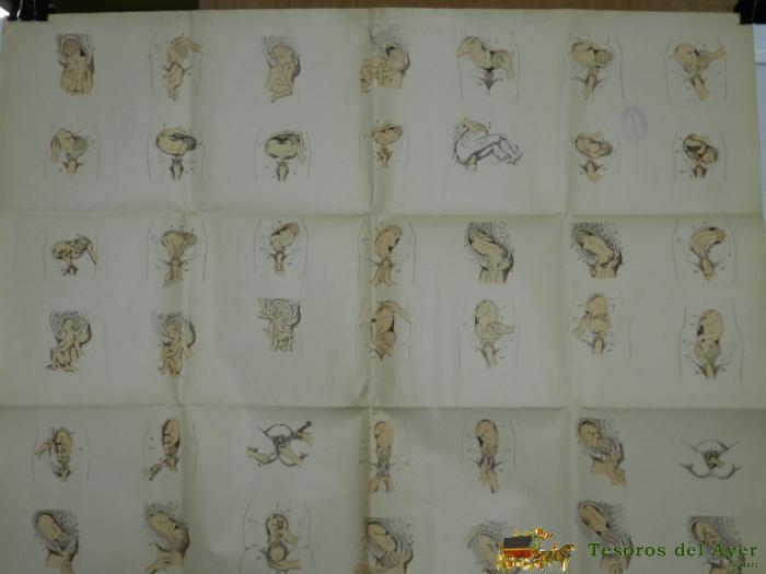 ANTIGUO CARTEL UTILIZADO EN FACULTAD DE MEDICINA, PARA ENSEÑAR A LOS ESTUDIANTES LA DIFERENTES POSTURAS EN LAS QUE SE PUEDE COLOCAR UN BEBE EN EL VIENTRE DE LA MADRE, MUY INTERESANTE, MIDE 99 X 75 CMS.