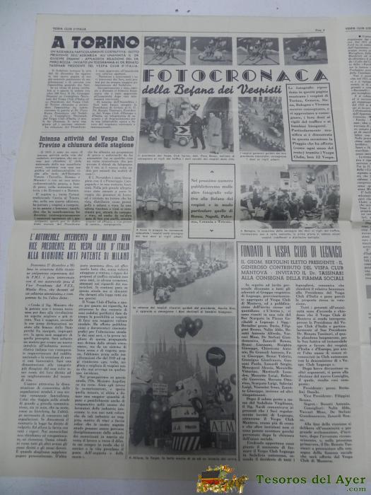 VESPA CLUB D´ITALIA, NOTICIARIO DEL VESPISTA ITALIANO, N. 45, ENERO DE 1956, CON MUCHISIMAS FOTOGRAFIAS, 4 PAG, MIDE 42 X 29,5 CMS.