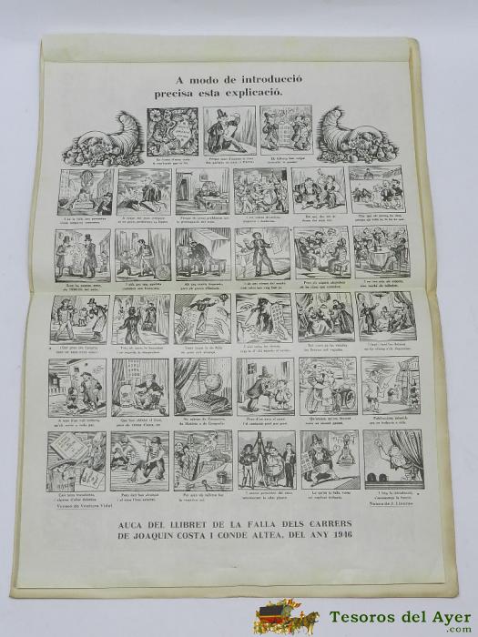 ANTIGUA COLECCIóN DE 10 ALELUYAS, AUCAS - PRO FALLA JOAQUíN COSTA-CONDE ALTEA - SERIE PRIMERA - FALLAS DE VALENCIA - FECHA IMPRESIóN: VALENCIA, 1946. - VALENCIA ARTISTA Y FOLKLORE - TAMAñO: 32 X 22 CM. - DESCRIPCIóN: PRIMERA SERIE: EL CALENDARI DE L VALENCIá. HISTORIA DE MILá. LA TIERRA DE JAUJA. EL MERCAT DE VALENCIA. DESDICHAS DE UN HOMBRE GORDO. DESDICHAS DE UN HOMBRE FLACO. EL MUNDO AL REVéS. VIDA DEL ENANO DON CRISPíN. HISTORIA DE BERTOLDO, BERTOLDINO Y CACASENO. EL GARRUFO - DE LA BIBLIOTECA R. GAYANO LLUCH - MIDEN 43 X 31 CMS