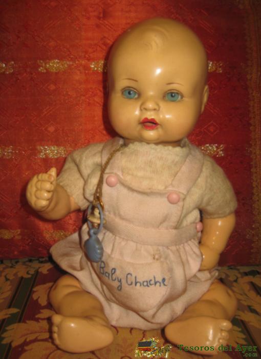 MUñECO BABY CHACHE, CIRCA PRNCIPIOS DE LOS 50. OJO DURMIENTE, ROPA DE ORIGEN. MIDE 36 CMMUñECO BABY CHACHE, CIRCA PRNCIPIOS DE LOS 50. OJO DURMIENTE, ROPA DE ORIGEN. LE FALTA LA TAPA QUE CUBRE EL SISTEMA EN LA PARTE POSTERIOR DEL CUERPO. MIDE 36