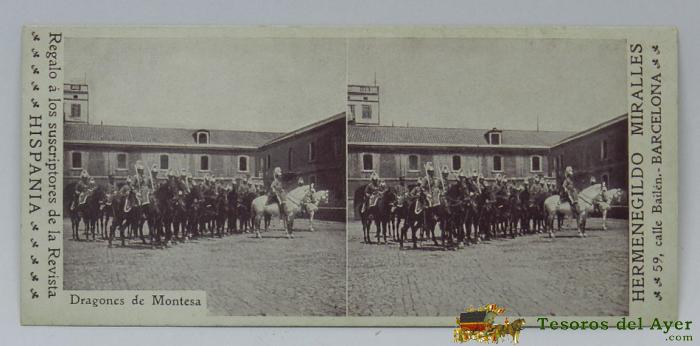 FOTOGRAFíA DE LA ORDEN DE CABALLERIA DRAGONES DE MONTESA - ESTEREOSCOPICA REGALO DE LA REVISTA HISPANIA - BUEN ESTADO DE CONSERVACIóN, TIENE UNAS MEDIDAS DE 18 CM X 8 CM.