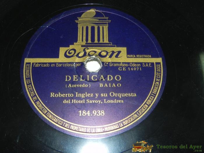 DISCO DE PIZARRA RAMINAY. DELICADO. ROBERTO INGLEZ Y SU ORQUESTA DEL HOTEL SAVOY, LONDRES - ED. ODEON. N. 184.938 -