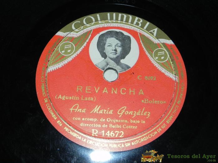 DISCO PIZARRA. ANA MARIA GONZALEZ- MADRID (SCHOTISH, AGUSTIN LARA) - REVANCHA (BOLERO AGUSTIN LARA) - R 14672. ED. COLUMBIA.