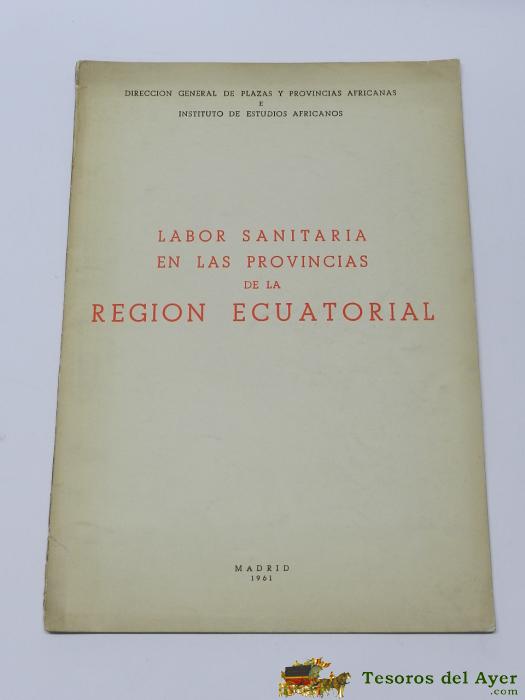 LABOR SANITARIA EN LAS PROVINCIAS DE LA REGION ECUATORIAL. DIRECCION GENERAL DE PLAZAS Y PROVINCIAS AFRICANAS. EDITORIAL : INST. ESTUD. AFRICANOS. MADRID. MIDE 31 X 22 CMS. AÑO 1961 - 1ª EDICION - 68 PAG.ILUSTRADO CON 2 MAPAS A TODA PáGINA. GRáFICOS Y TABLAS. CON MUCHAS FOTOGRAFIAS DE LOS HOSPITALES, ZONAS SANITARIAS Y DISPENSARIOS DE GUINEA, LABORATORIOS, QUIRóFANOS, ETC. CARTONé RúSTICA. MUY INTERESANTE.