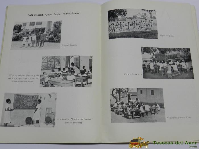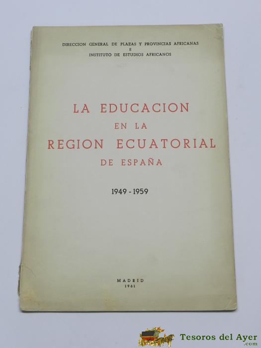 LA EDUCACION EN LA REGION ECUATORIAL DE ESPAÑA - DIRECCION GENERAL DE PLAZAS Y PROVINCIAS AFRICANAS. EDITORIAL : INST. ESTUD. AFRICANOS. MADRID. MIDE 31 X 22 CMS. AÑO 1961 - 1ª EDICION - 90 PAG. CON MUCHISIMAS FOTOGRAFIAS DE ESCUELAS DE RIO MUNI, BATA, SANTA ISABEL, ILUSTRADO CON VARIAS LAMINAS DE GOMáN 60.