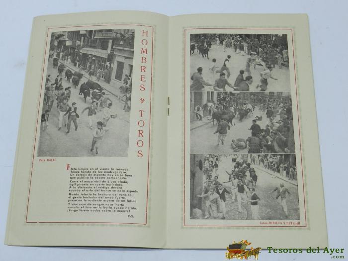 ANTIGUO PROGRAMA DE FESTEJOS DE SAN FERMIN 1950 - PAMPLONA - ENCIERROS - ENCIERRO - MIDE 20,5 X 12 CMS - 20 PAG APROX - CON PROGRAMA DE LA FIESTA TAURINA.