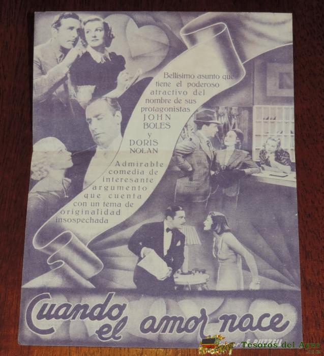 CUANDO EL AMOR NACE, DOBLE ORIGINAL, JOHN BOLES DORIS NOLAN, CON PUBLICIDAD DEL TEATRO PRINCIPE, ESTRENO 1941.