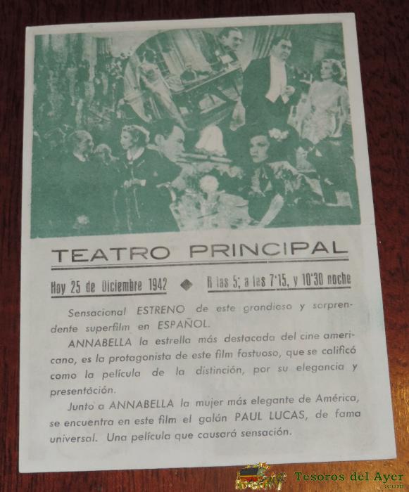 CENA EN EL RITZ - ANNABELLA - PAUL LUKAS - CON PUBLICIDAD - CON PUBLICIDAD DE TEATRO PRINCIPAL - AÑO 1942.
