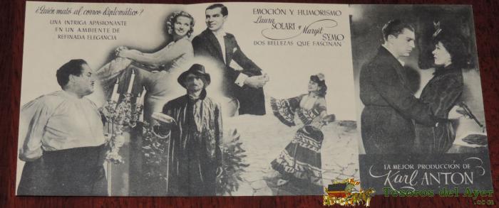 EL MISTERIO DE LA EMBAJADA, PROGRAMA DOBLE, ESTRENO 1944, CON PUBLICIDAD DEL TEATRO PRINCIPAL