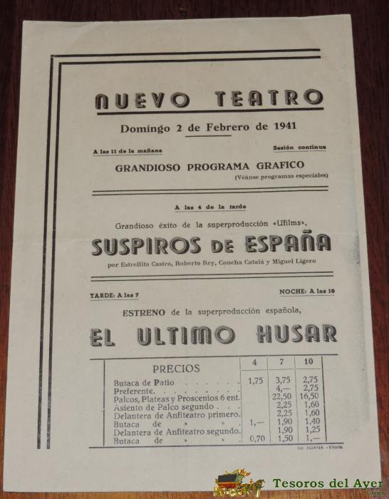 EL ÚLTIMO HUSAR CON CONCHITA MONTENEGRO, ARMANDO CALVO YANA MARISCAL, CON PUBLICIDAD DEL NUEVO TEATRO, AÑO 1941.