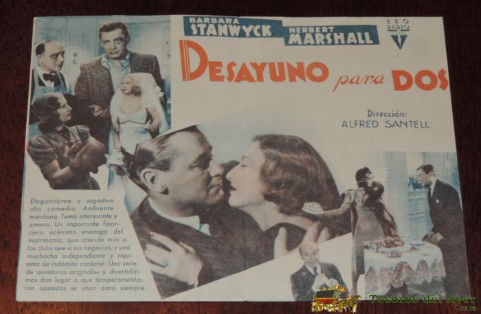 DESAYUNO PARA DOS, PROGRAMA DOBLE, ESTRENO 1941, CON PUBLICIDAD DEL TEATRO PRINCIPAL