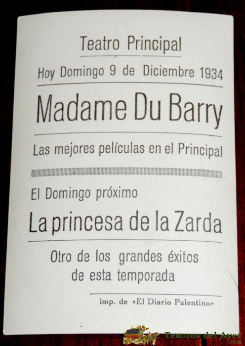 MADAME DU BARRY, DOLORES DEL RIO, REGINALD OWEN, PROGRAMA ORIGINAL ESTRENO TEATRO PRINCIPAL 1934, PALENCIA, DIRECCIÓN: WILLIAM DIETERLE. PRODUCCIÓN: WARNER BROS.