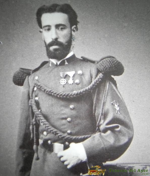 FOTOGRAFIA ALBUMINA TIPO CDV, MILITAR CON LA CRUZ AL MÉRITO A LA MILICIA CIUDADANA DE AMADEO I, FOTO E. OTERO, MADRID, MIDE 11 X 6,5 CMS, TIENE MUY BUENA CALIDAD.