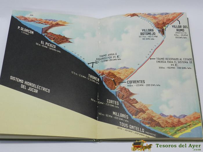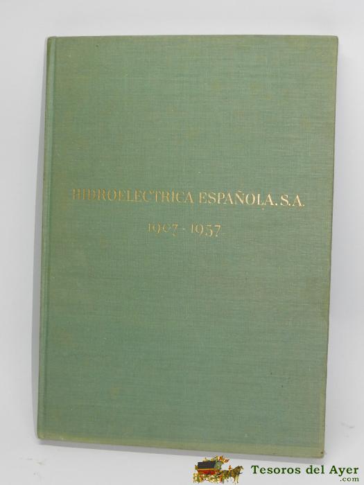 HIDROELECTRICA ESPAÑOLA (1907-1957), PRIEMRA EDICION 1958, BARCELONA, MIDE 30 X 21,50 CM. 134 PGS.CON FOTOGRAFíAS A B/N Y REPRODUCCIONES DE ACUARELAS, MAPA A COLOR, TAPAS EN TELA EDITORIAL ESTAMPADO EN ORO.