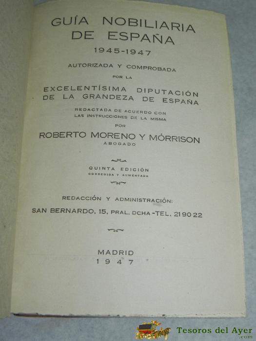GUIA NOBILIARIA DE ESPAÑA 1945-1947, ROBERTO MORENO Y MORRISON, MADRID 1947