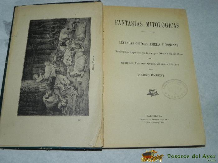 LIBRO FANTASIAS MITOLOGICAS POR PEDRO UMBERT. LEYENDAS GRIEGAS, ASIRIAS Y ROMANAS TRADICIONALES INSPIRADAS EN LA ANTIGUA FáBULA Y EN LAS OBRAS DE EURíPIDES, TEóCRITO, OVIDIO, VIRGILIO Y APULEYO, BARCELONA IMPRENTA DE HENRICH Y CA, CALLE DE CORCEGA, 348, T