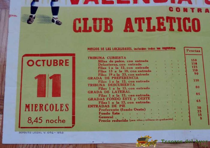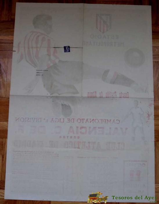 1961, CARTEL ORIGINAL ATLETICO DE MADRID, VALENCIA C. DE F., FUTBOL, CAMPEONATO DE LIGAR 1ª DIVISION, CUARTO PARTIDO DE ABONO - 11 DE OCTUBRE DE 1961 - ESTADIO METROPOLITANO - MIDE 70 X 50 CMS - LIT. ORTEGA S.A., RARISIMO, PIEZA DE MUSEO.