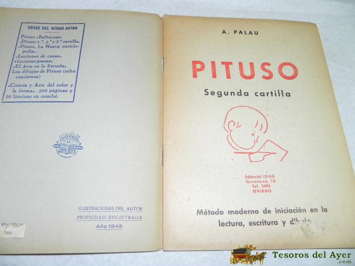 PITUSO, PALAU 2ª CARTILLA, METODO DE INICIACION EN LA LECTURA, ESCRITURA Y DIBUJO, 1948, EDITORIAL IDAG, 20 PAGINAS, MIDE 21 X 15,7 CMS.
