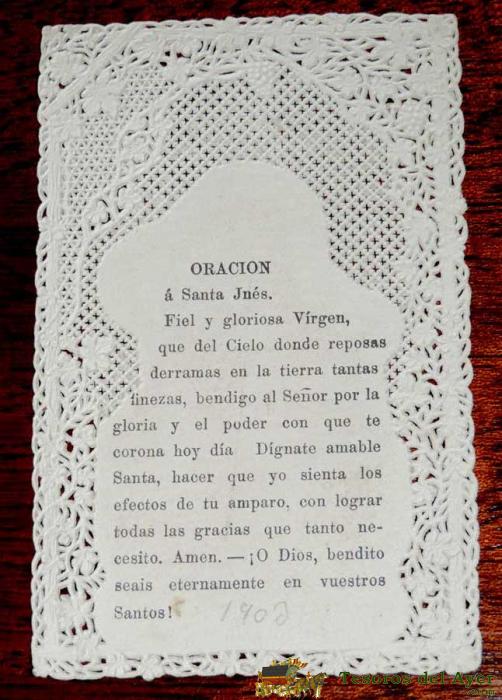 ANTIGUA ESTAMPA SAGRADA RELIGIOSA CALADA DE SANTA INES - BUEN ESTADO - MIDE 11 X 7CMS. ESTAMPA BORDADA, CALADA,