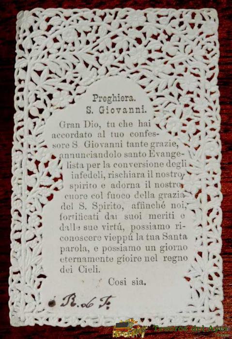 ANTIGUA ESTAMPA SAGRADA RELIGIOSA CALADA DE SAN GIOVANNI - BUEN ESTADO - MIDE 11 X 7CMS. ESTAMPA BORDADA, CALADA,