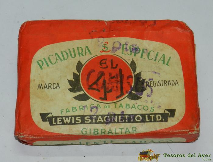 PAQUETE TABACO PICADURA EL 41, GIBRALTAR 4 ONZAS, SIN ABRIR, MIDE 12,5 X 8,5 X 2 CMS.