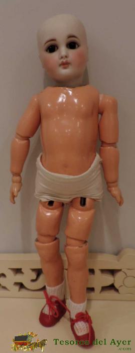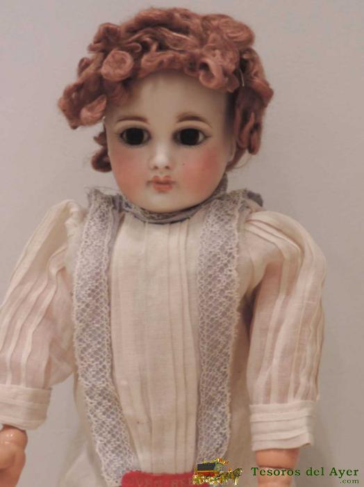 ANTIGUA MUñECA BELTON TIPE -CA. 1875-1880 -38 CM. INTERESANTE MUñECA TIPO BELTON. SE IDENTIFICAN CON ESTE NOMBRE LAS MUñECAS CUYAS CABEZAS NO PRESENTAN CORTE CRANEAL, SINO QUE SON CERRADAS EN SU PARTE SUPERIOR Y CON