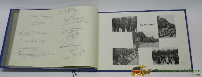 LA GRANJA. 5ª COMPAÑÍA. AÑO 1943. SEGOVIA, ALBUM IMPRESO, MIDE 30 X 21 CM. CON 14 HOJAS, CON FOTOGRAFíAS, DE RECUERDOS DE DICHO CAMPAMENTO UNIVERSITARIO, Y OTRA HOJA, CON EL HIMNO DE INFANTERíA. TELA EDITORIAL. MILICIAS UNIVERSITARIAS, CON NOMBRE DE SU ANTERIOR PROPIETARIO Y FIRMAS MANUSCRITAS DE LOS COMPAñEROS Y ALGUNA DEDICATORIA, BUEN ESTADO.