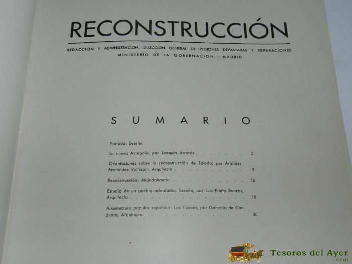 ANTIGUA REVISTA RECONSTRUCCION Nº 9 - DE LA DIRECCION DE REGIONES DEVASTADAS Y REPARACIONES FEBRERO 1941 - MUCHAS FOTOGRAFIAS E ILUSTRACIONES DE LA RECONSTRUCCION DE MAJADAHONDA, SESEÑA, ETC...- MIRAR FOTO ADICIONAL CON EL SUMARIO COMPLETO, 50 PAG. APROX.