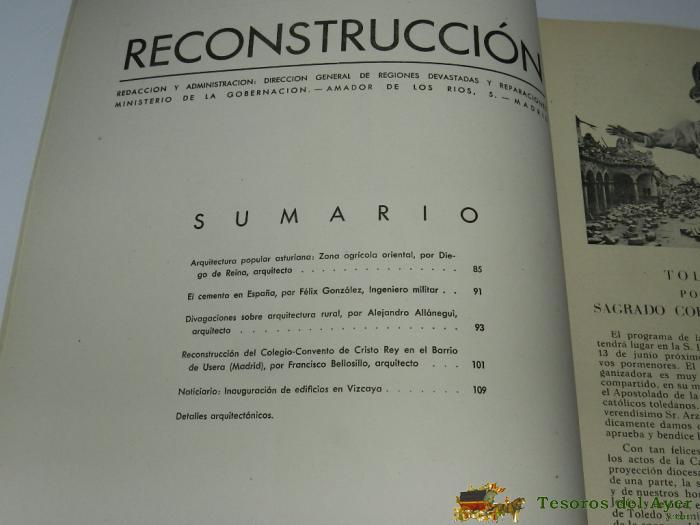 ANTIGUA REVISTA RECONSTRUCCION Nº 31 - DE LA DIRECCION DE REGIONES DEVASTADAS Y REPARACIONES, MARZO 1943 - MUCHAS FOTOGRAFIAS E ILUSTRACIONES DE ARQUITECTURA POPULAR ESPAÑOLA, RECONSTRUCCION DEL COLEGIO-CONVENTO DE CRISTO REY EN EL BARRIO DE USERA (MADRID), ETC...- 50 PAG. APROX.
