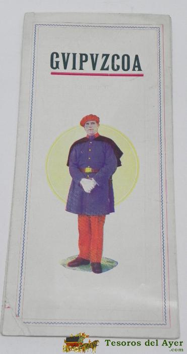 FOLLETO DE GUIPUZCOA, CON FOTOGRAFIAS DE SAN SEBASTIAN, TOLOSA, ZARAUZ, DEVA, ZUMAYA, AZPEITIA, OÑATE, FUENTERRABIA, EIBAR, PASAJES, VERGARA + PLANO DE LA PROVINCIA, MIDE DESPLEGADO 69,5 X 50 CMS