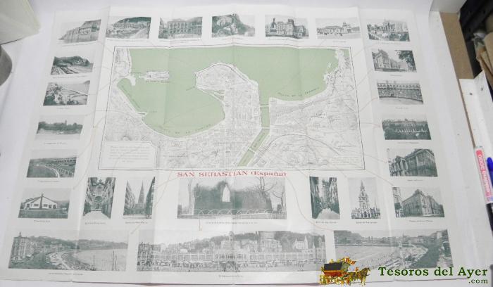 ANTIGUO PLANO Y GUIA DE SAN SEBASTIAN - MUY INTERESANTE, CON SELLO DE LA REPUBLICA, GRAN CANTIDAD DE FOTOGRAFIAS - FORMATO DESPLEGADO 70 X 50 CMS.