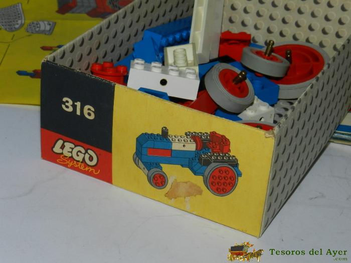 TRACTOR DE LEGO - REF. 316 - FINALES AÑOS 60 - PARECE COMPLETO, PERO NO LO HEMOS MONTADO, CONTIENE INSTRUCCIONES, PERO CON CINTA ADHESIVA EN LAS DOBLECES. LA CAJA MIDE 16 X 11 CMS.