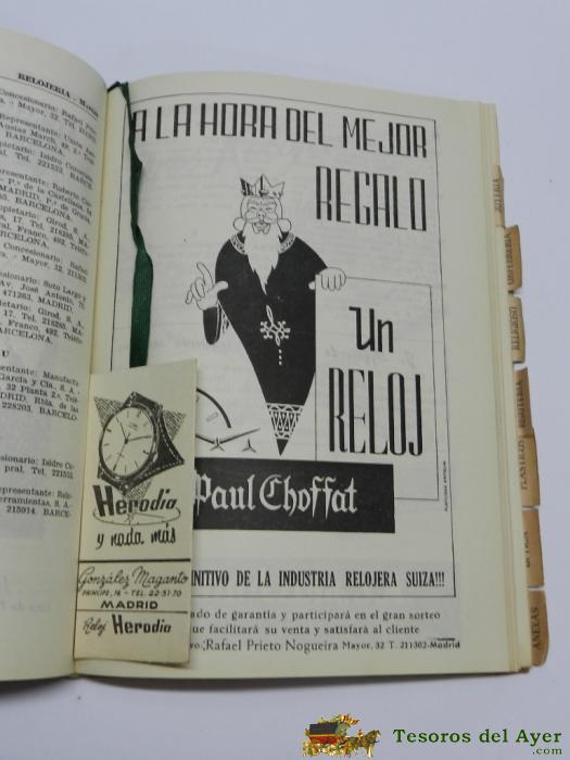 ANEXO DEL ANUARIO DE RELOJERIA EN ESPAÑA 1959. CONSTA DE 164 PAGINAS EN LAS QUE SE INCLUYE INFORMACION DE LAS RELOJERIAS, ANUNCIOS, Y APARTADOS ESPECIFICOS DE JOYERIA, ORFEBRERIA, ARTE RELIGIOSO, BISUTERIA, PLASTICOS, ETC. 21 X 15 CM. CUBIERTA RUSTICA. BU