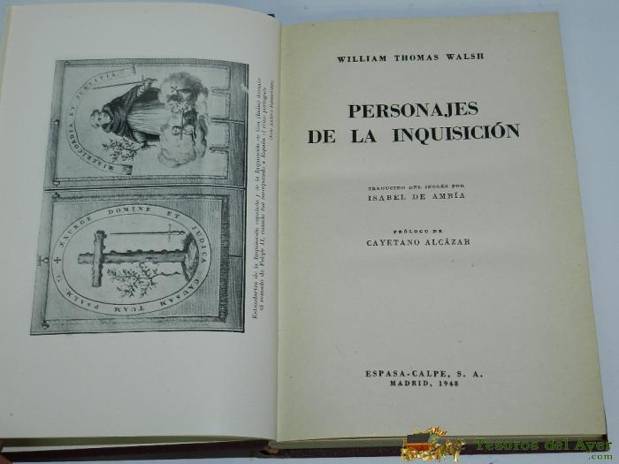 PERSONAJES DE LA INQUISICIóN, WALSH, WILLIAM THOMAS, ESPASA-CALPE. MADRID. 22 CMS. 331 PAGINAS, ENCUADERNACIóNTAPA DURA TRADUCIDO DEL INGLéS POR ISABEL DE AMBíA; PRóLOGO DE CAYETANO ALCáZAR. TRADUCCIóN DE: CHARACTERS OF THE INQUISITION. ESPASA CALPE 1948