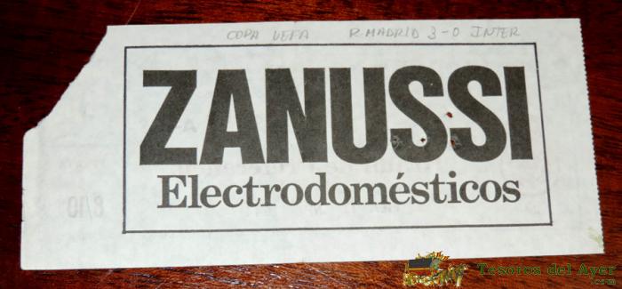 ENTRADA DE FÚTBOL, SEMINIFINAL COPA UEFA, REAL MADRID 3 - INTER DE MILAN 0, 1984/85 ESTADIO SANTIAGO BERNABEU, VER LA FOTOGRAFIA POSTERIOR CON LAS ANOTACIONES A LAPIZ