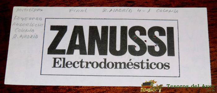 ENTRADA DE FÚTBOL, FINAL VI TROFEO INTERNACIONAL SANTIAGO BERNABEU 1984, REAL MADRID 4 - FC KOLN 1, ESTADIO SANTIAGO BERNABEU, VER LA FOTOGRAFIA POSTERIOR CON LAS ANOTACIONES A LAPIZ,