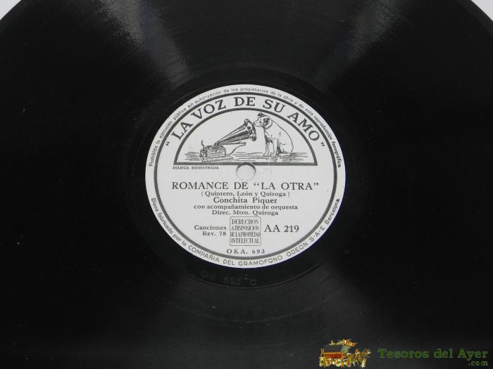 DISCO DE PIZARRA DE CONCHITA PIQUER - LOLA CLAVIJO / ROMANCE DE LA OTRA, CON ACOMPAñAMIENTO DE ORQUESTA DIREC. MTRO. QUIROGA, AA 219.