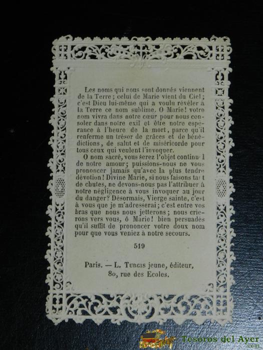 ANTIGUA ESTAMPA SAGRADA RELIGIOSA CALADA - BUEN ESTADO - MIDE 11,5 X 7,5 CMS. APROX. ESTAMPA BORDADA, CALADA, HOLY CARD LACE.