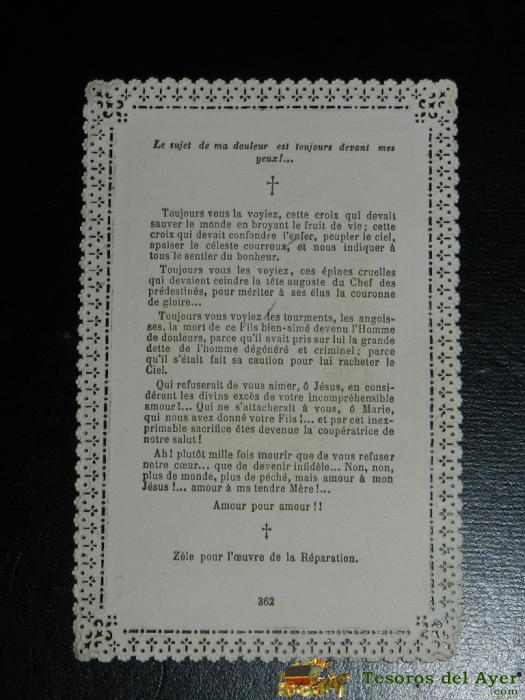 ANTIGUA ESTAMPA SAGRADA RELIGIOSA CALADA - BUEN ESTADO - MIDE 12 X 8 CMS. APROX. ESTAMPA BORDADA, CALADA, HOLY CARD LACE.