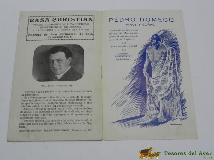 PROGRAMA DEL TEATRO REAL, 8 DE DICIEMBRE DE 1921, SIEGFRIED, EL ANILLO DEL NIBELUNGO, TIENE 20 PAG, MIDE 18,5 X 11,5 CMS.